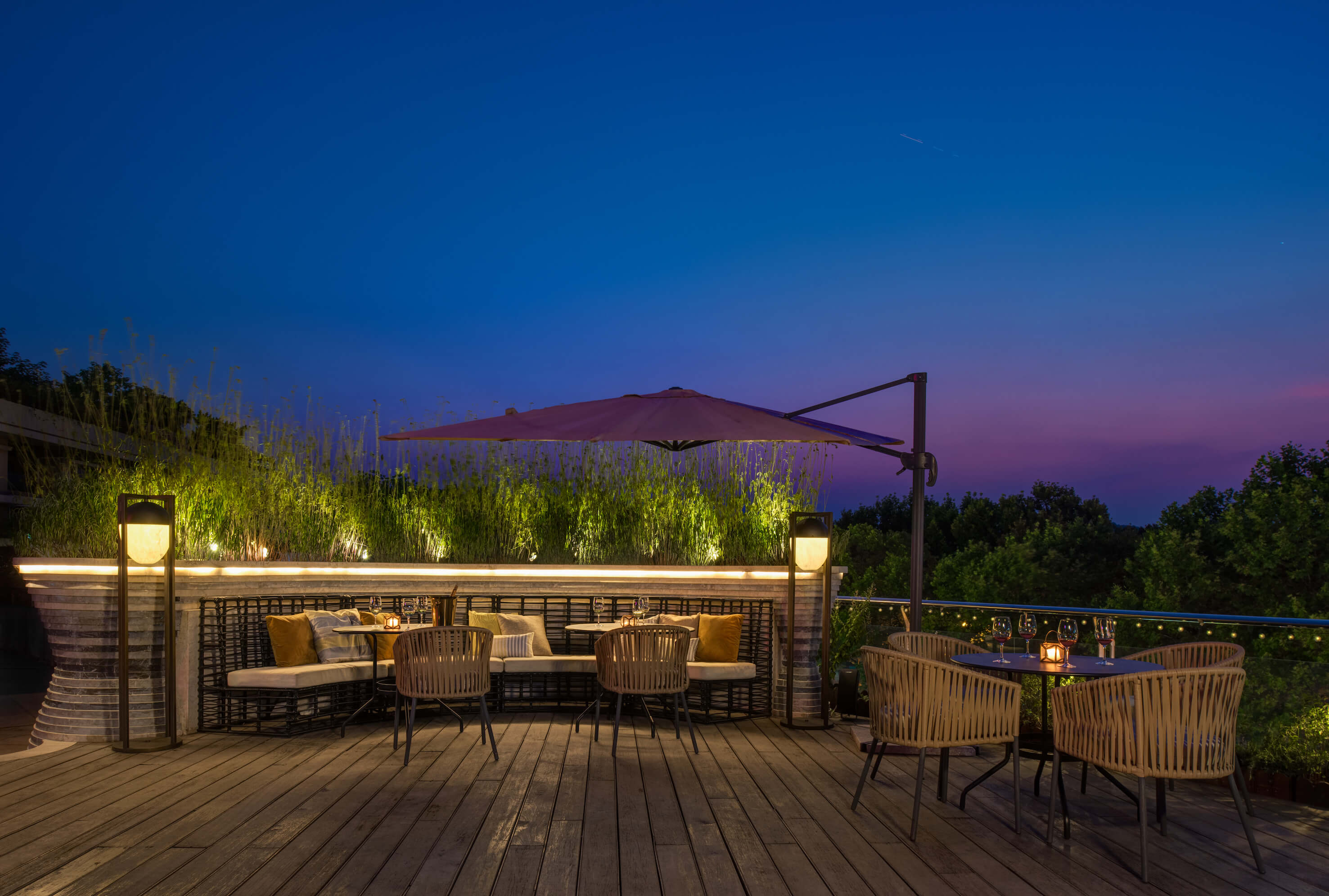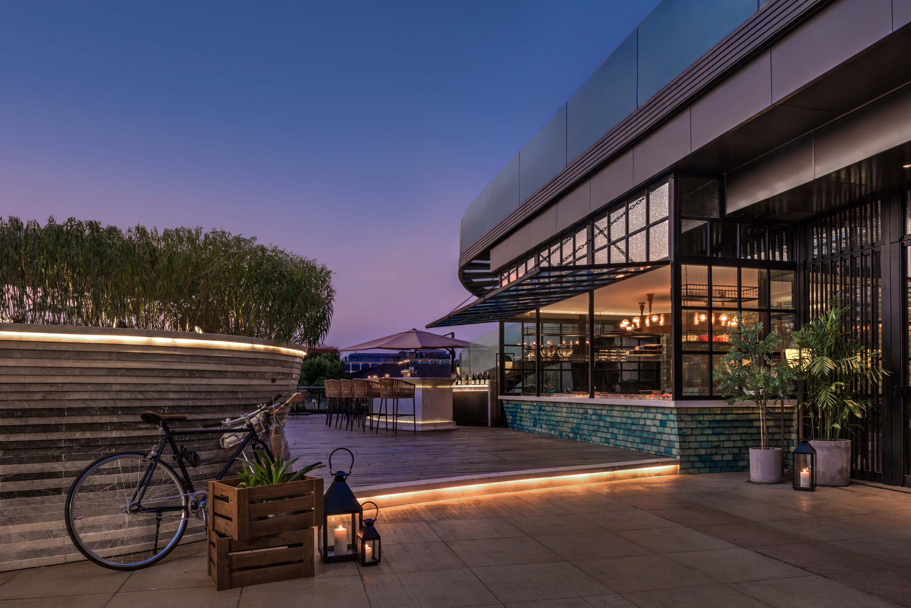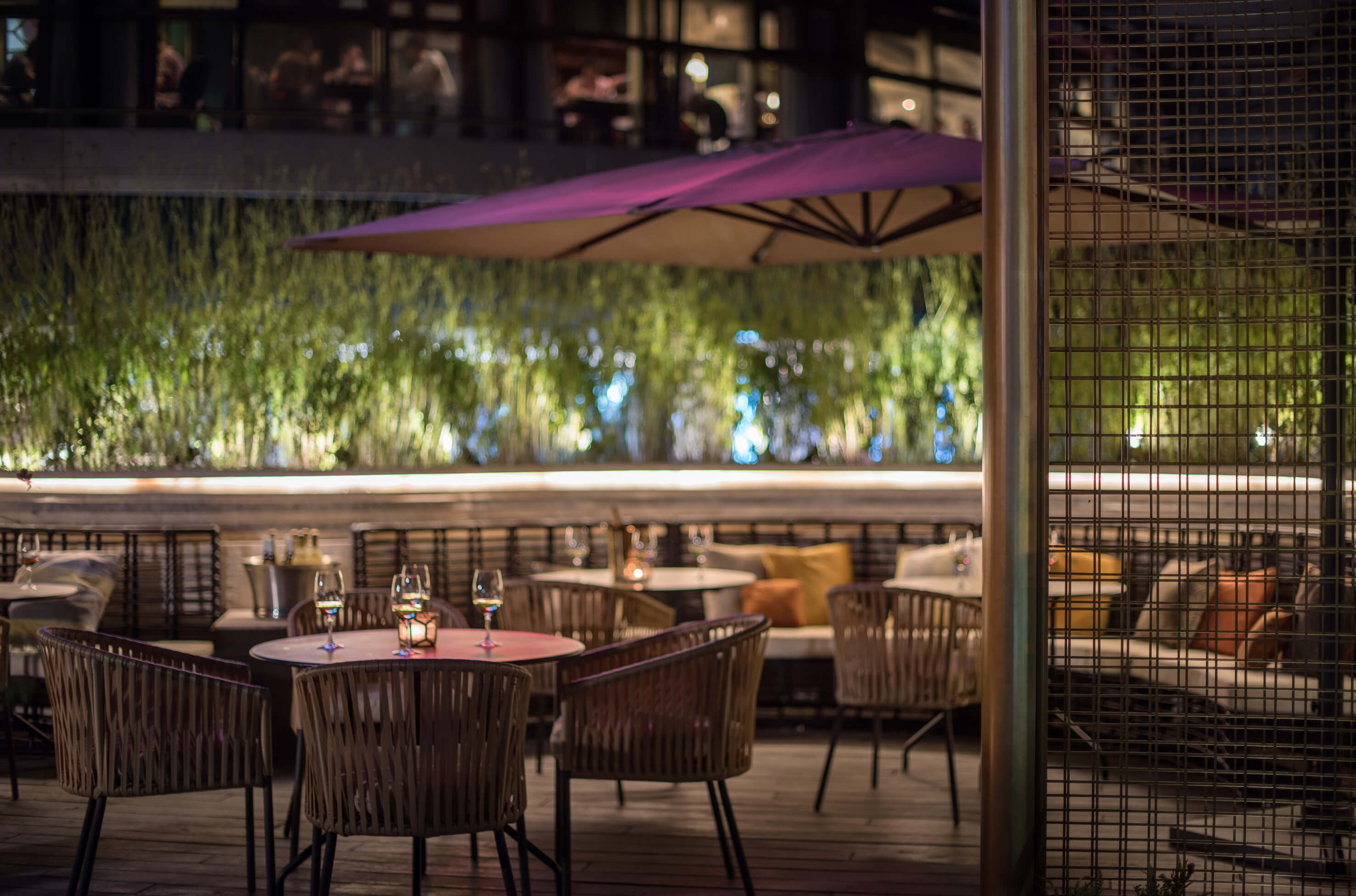 Walking past the outdoor terrace and through the fishing net decorated door, it opens up a modern upbeat speakeasy lounge. Guests are immediately drawn to the focal point of the space – The acrylic lighting that come down from the ceiling. The colour changes with the music and contributes to the dynamic atmosphere.